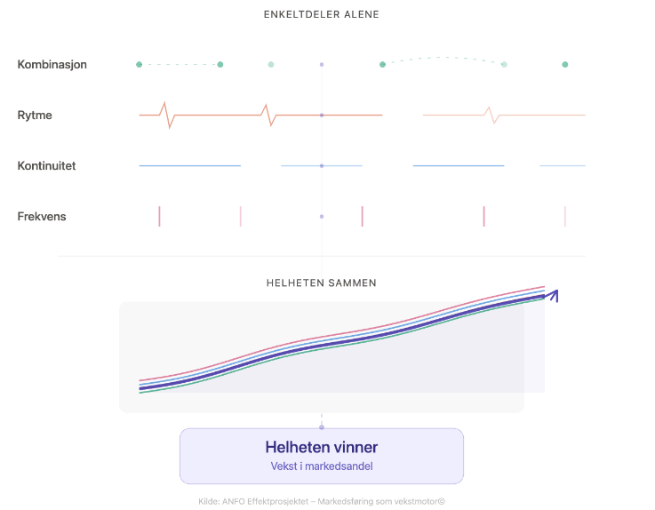 • Det er ikke kanalen som skaper vekst. Det er kombinasjonen, rytmen og kontinuiteten.